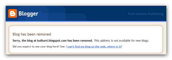 Blogger have removed my BULLS blog, unjustifiably and without notice, on the basis that it contained malicious javascript. I suspect this means that they thought it was spamming people. Certainly I did not put any such script into it.