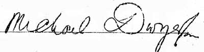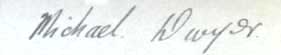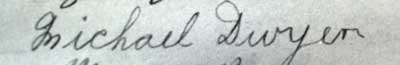 This is the signature of Micheal Dwyer who fought in Marrowbone Lane.