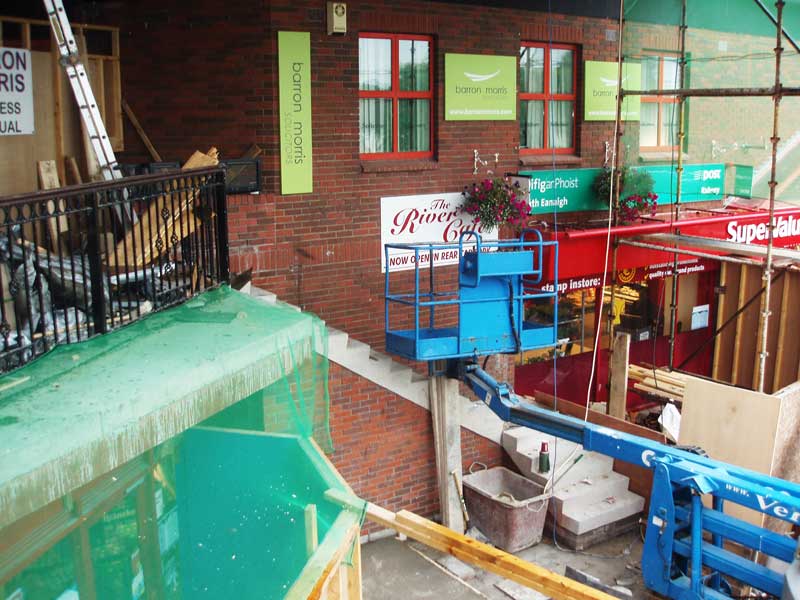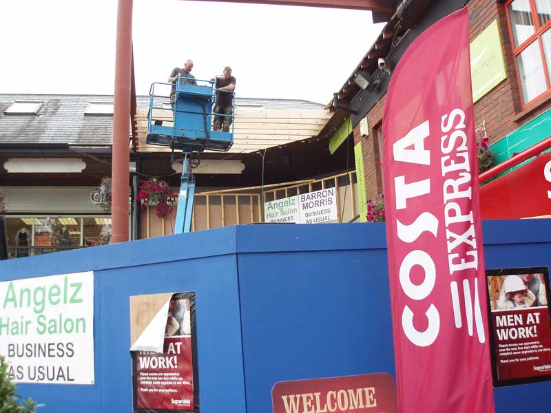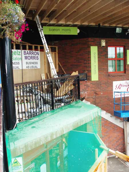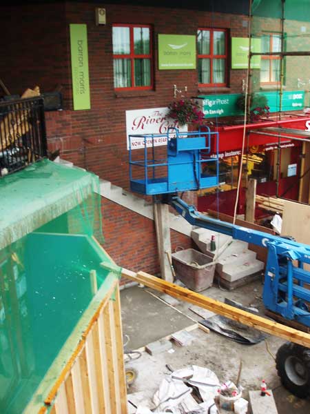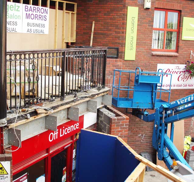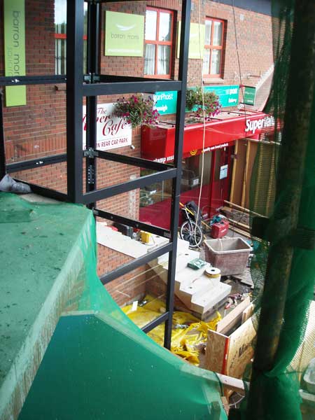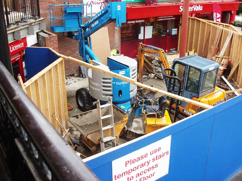 The Off Licence entrance now needs protection from dust and debris as the focus of the operation shifts back to the lift area.