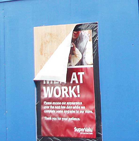 That's going to leave the solicitors and the hairdressers, in particular, in some shade or darkness. But never mind. The sign asking us to excuse the inconvenience says it will only be for a few days! Clearly designed with a smaller job in mind.