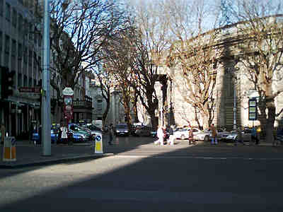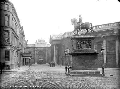 The statue of King William at the junction of Dame Street and Foster Place, captured in the Lawrence Collection (above) has gone (below).
