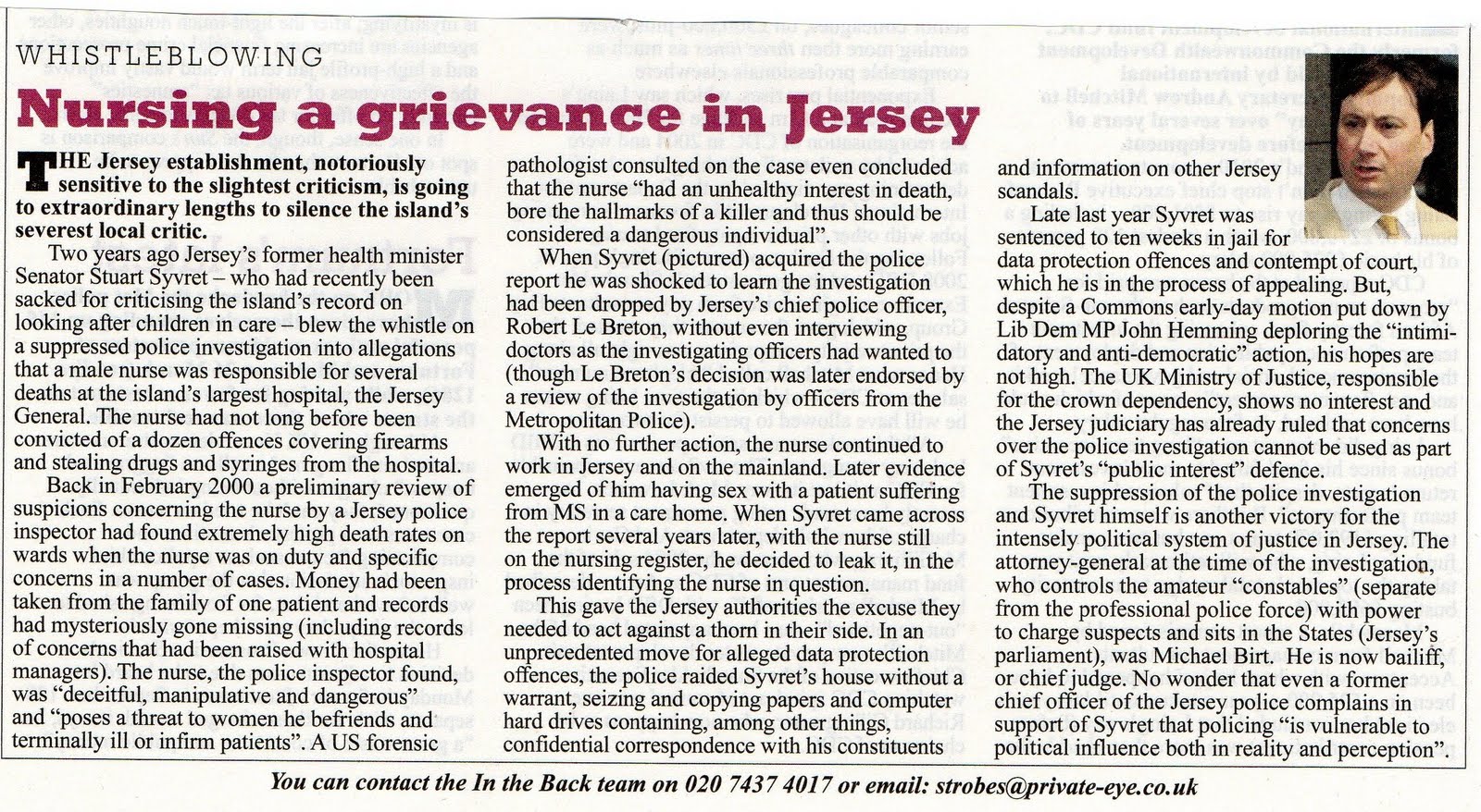 Private Eye magazine has published an article concerning events in Jersey. They examine one of the things that I exposed – and the consequent actions taken against me by what they describe as “the intensely political system of justice in Jersey”. Click on the image to make the article expand to a readable size.