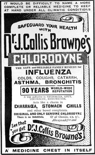 And let us not forget that Cholordyne cures all, even life itself in some cases. This stuff was a mixture of Laudanum (opium), Cannabis and Chloroform and was highly addictive. Over time its strength and contents were changed to make it more compatable with longer living.